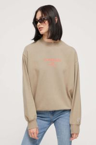 Бавовняна кофта Superdry жіноча колір бежевий з аплікацією